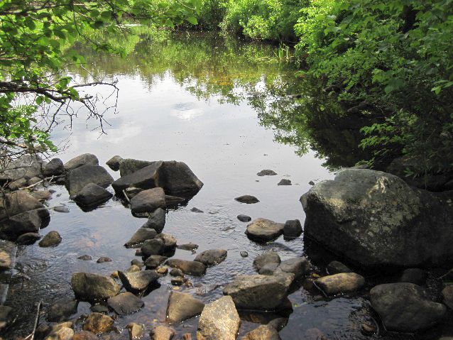 It was a beautiful day and the surface water temperature was almost 80°, so I just took off my shoes and waded in. Over time, I worked my way around to where the Beaver Brook was coming in at about 64°F, where I have caught some nice trout in the past. The pool at the mouth of the brook is less than a foot deep, so I switched to a small floating Rapala lure. With nearly every cast a nice fish made a beeline for my lure and struck with a big splash.