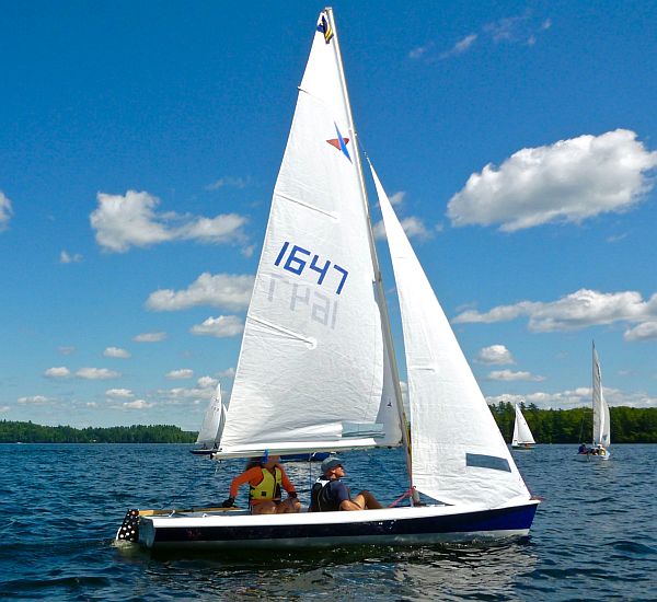 A cluster of sailboats racing off Camp Runoia during the 2016 Hurricane Cup. Photo from the Great Pond Yacht Club.