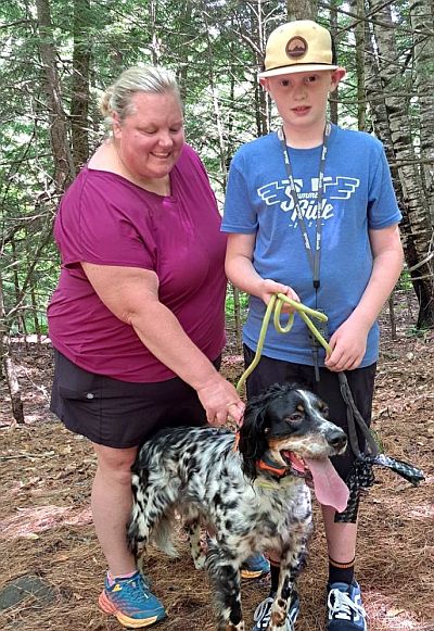 I did get out hiking at Mt. Phillip for a bit and met Whitney and Charlie Wheeler hiking with their dog Gunner. They are from the Keene, NH area but have a camp at Crystal Springs, where they spend the summer. Charlie is reading Stranger in the Woods about the North Pond Hermit. His mom says he was practicing walking the trail by stepping from rock to rock like the Hermit did to avoid leaving footprints. South Carolina with his family, including their grandsons, Sean (12) and Ben (18). Grandma Sue organized a family hike up French Mountain.